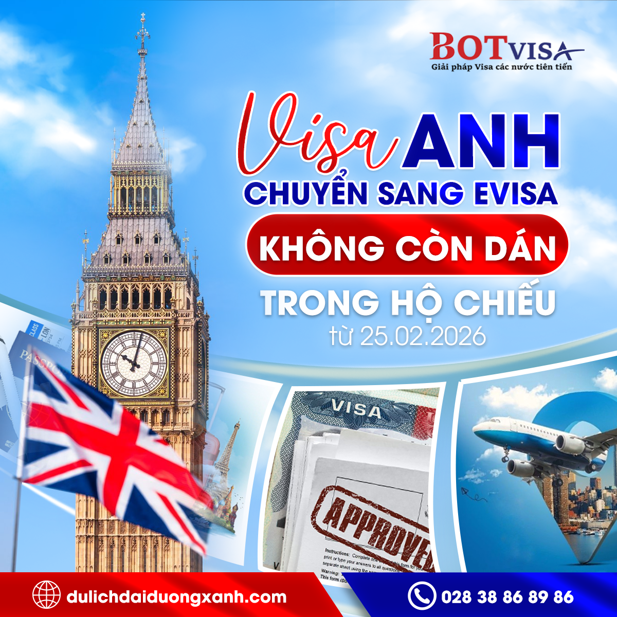 Từ 25/02/2026, Vương quốc Anh sẽ triển khai visa điện tử (eVisa) và ngừng cấp visa dán hộ chiếu truyền thống – đánh dấu bước chuyển đổi số toàn diện trong quản lý xuất nhập cảnh.